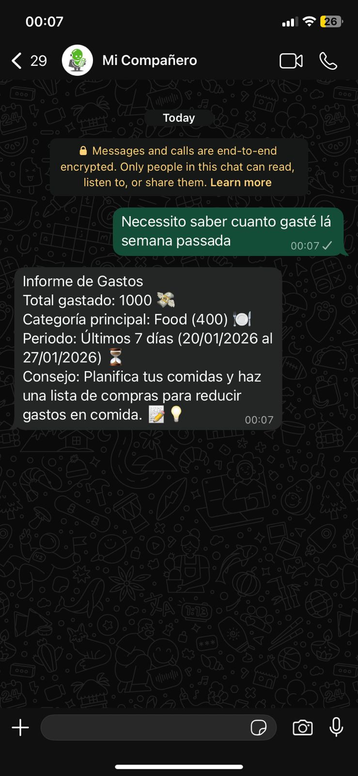 Mi Compañero es tu asistente financiero por WhatsApp.